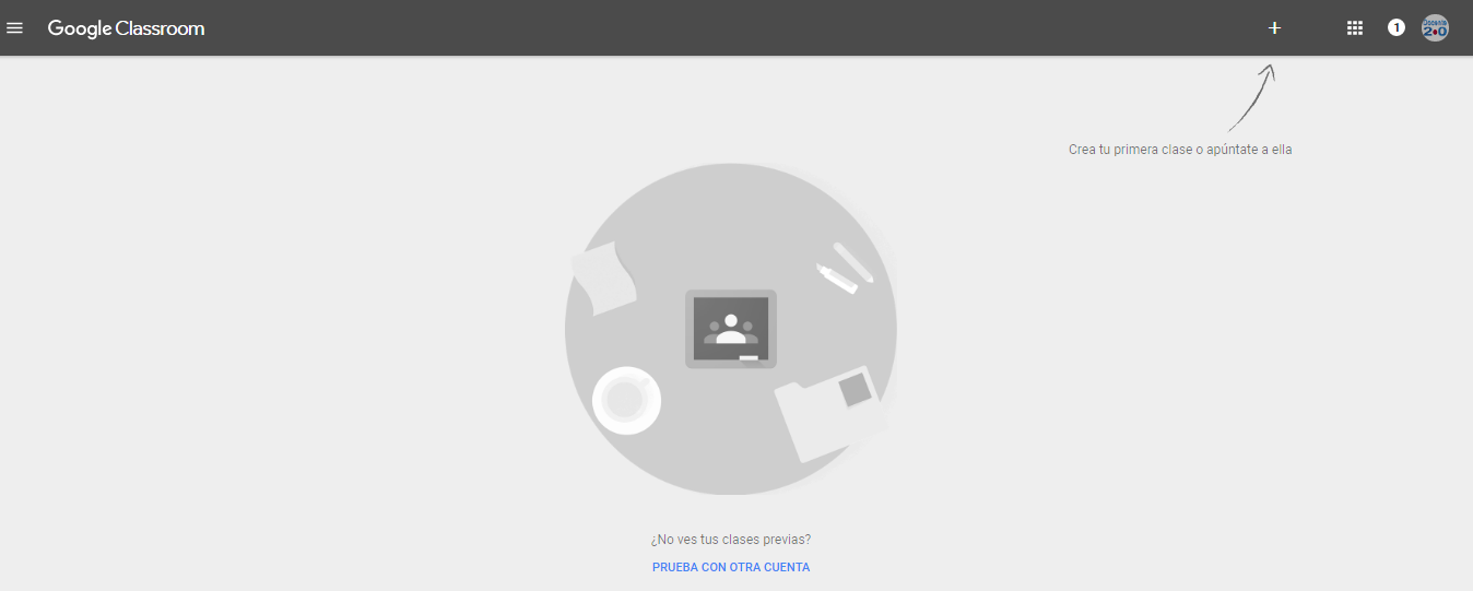 En primer sitio, debes entrar a Google Classroom con tu cuenta de Gmail. Te encontrarás con una pantalla como ésta.