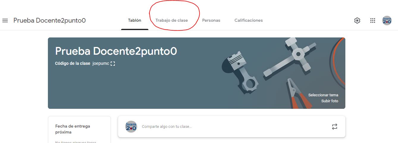 Situados en la pestaña “Trabajo de clase” podremos visualizar varias opciones.