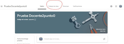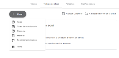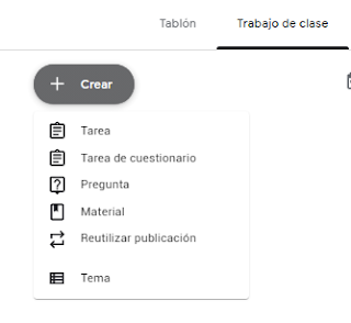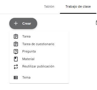 La segunda pestaña está dedicada al “Trabajo de clase“. Éste es el ocasión desde el que podremos crear las tareas para los alumnos y dejar el material necesario.